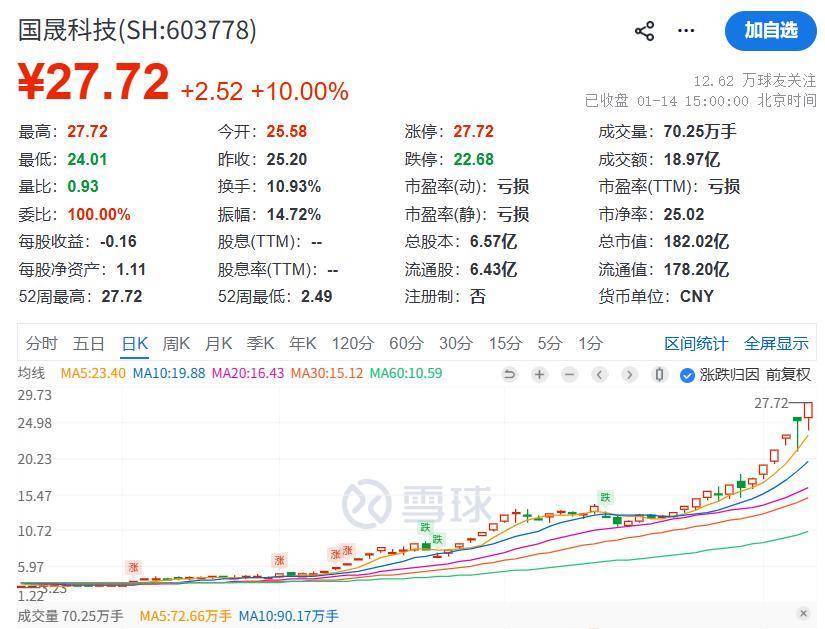 此前1月7日,国晟科技股票因存在市集厚谊过热及非感性炒格调险停牌,公司就股票走动特地波动及严重特地波动的关系事项进行了核查。鉴于关系核查责任已完成,经公司朝上海证券走动所央求,公司股票将于1月12日开市起复牌。但当场在1月12日开盘当日再次收录涨停板。