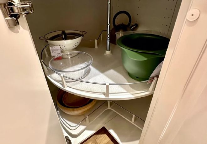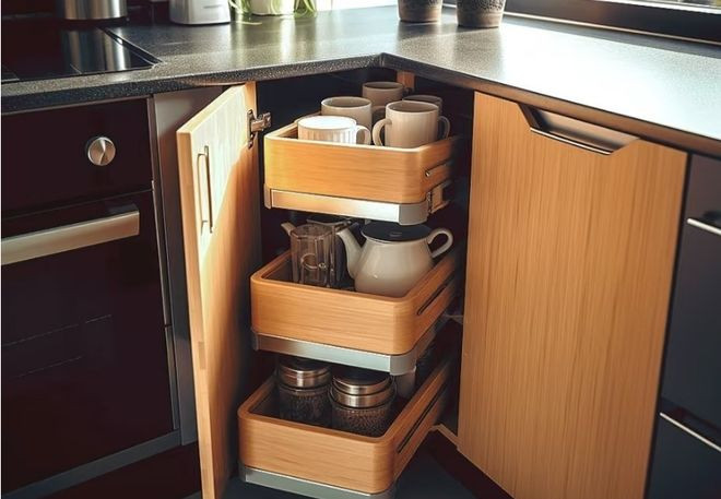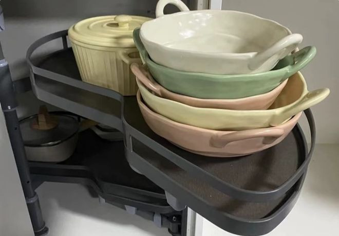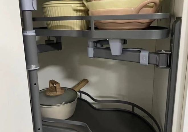 把转角位置改成拉篮,你会发现往时转角深处的锅具总爬进去拿,现时轻轻一拉,总计的物品都转到眼前。