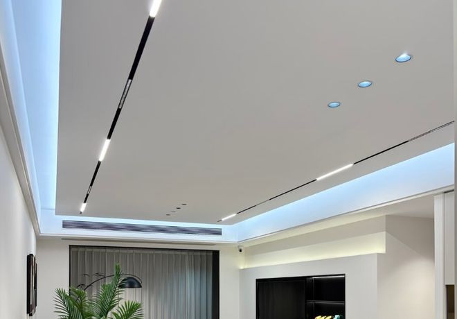 装修冷漠:装配轨说念灯的轨说念要提前镶嵌吊顶,留好考试口。
