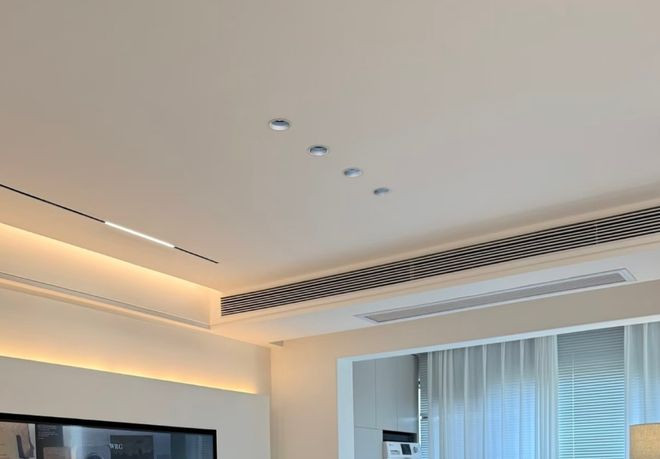这里有个装修细节,,即是客厅不错捣毁传统的大吊灯,装配粗豪的磁吸轨说念等,也不错温和搭配迁徙各式筒灯射灯等等。