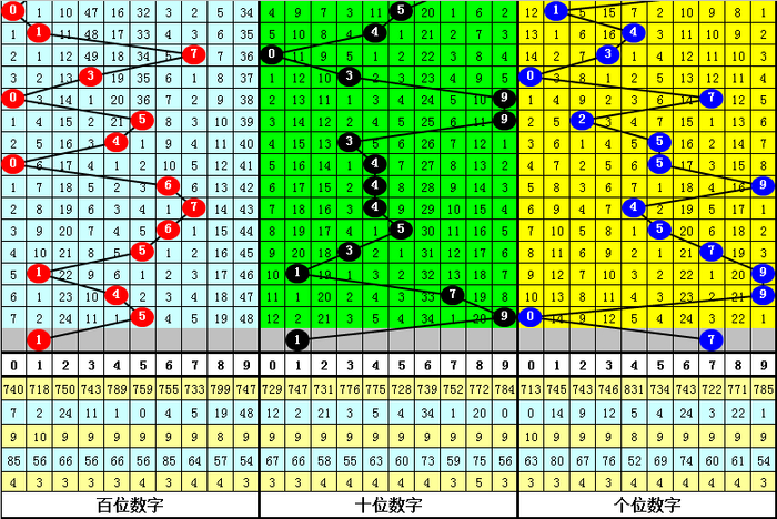 百位:刻下遗漏最大的号码为9,遗漏48期,历史上该号最大遗漏为54期,本期百位链接摈斥号码9。