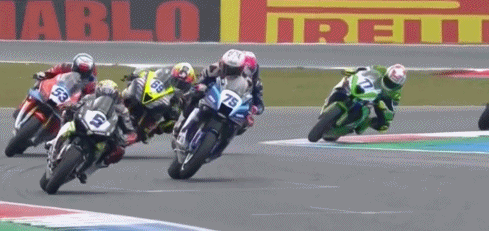 △张雪机车车手德比斯驾驶53号赛车的冲线技能。