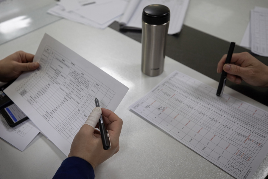 磨真金不怕火库里望夙昔,车顶、过说念、车下土沟里,王人有东说念主在坚苦着。车顶受电弓、天线、表里风挡、空调扇叶、车底转向架,车端连气儿部、车体、外门、外显等迷惑搜检王人在4东说念主两两组队同步进行。时常,一列动车每运行9900公里就要进行一次“全身”磨真金不怕火。“咱们接受12小时连气儿作战、24小时两班轮换的步地开展动车组一级修功课,作念到精检细修、精细证实。”虹桥动车诓骗所夜班一级修工长张冬说。