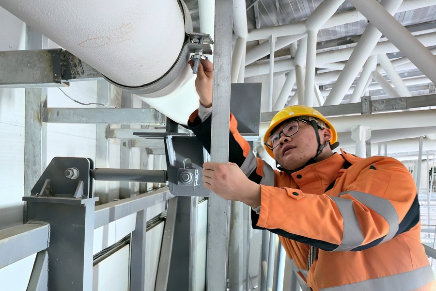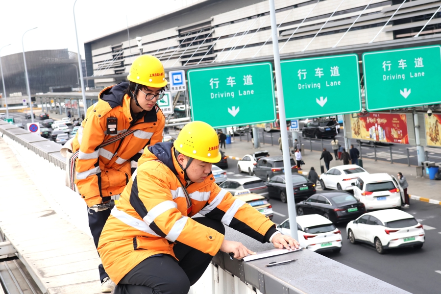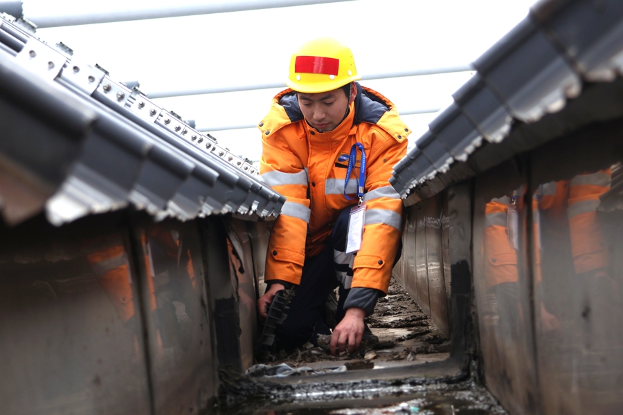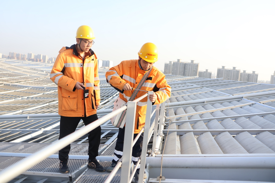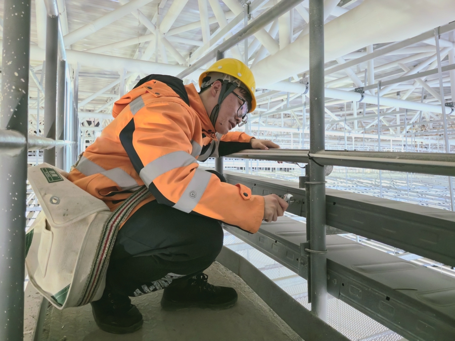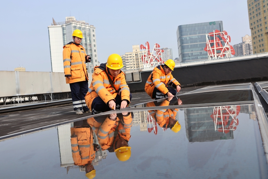 陈奕鑫则与工友夏冠鹏、潘梓翊构成“铁三角”,在寒潮中穿梭于上海站、昆山南站的各个边缘。昆山南站40米高的雨棚顶,寒风呼啸,他们冻得僵硬的手指仍在仅容一拳通过的排水口,抠挖堵塞的杂物,来去两次高空功课才摈斥积水冻裂隐患。