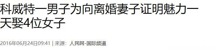 2016年6月,科威特《公论报》报谈了一个男东谈主在一天之内娶了4位浑家的新闻。这事在外东谈主看起来如实令东谈主调度和畏惧,但是望望这个须眉的付出,也足以让东谈主惊掉下巴。