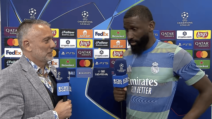 虎扑04月08日讯欧冠1/4决赛首回合,皇马1-2拜仁。赛后,皇马后卫安东尼奥-吕迪格接收CBS体育采访。