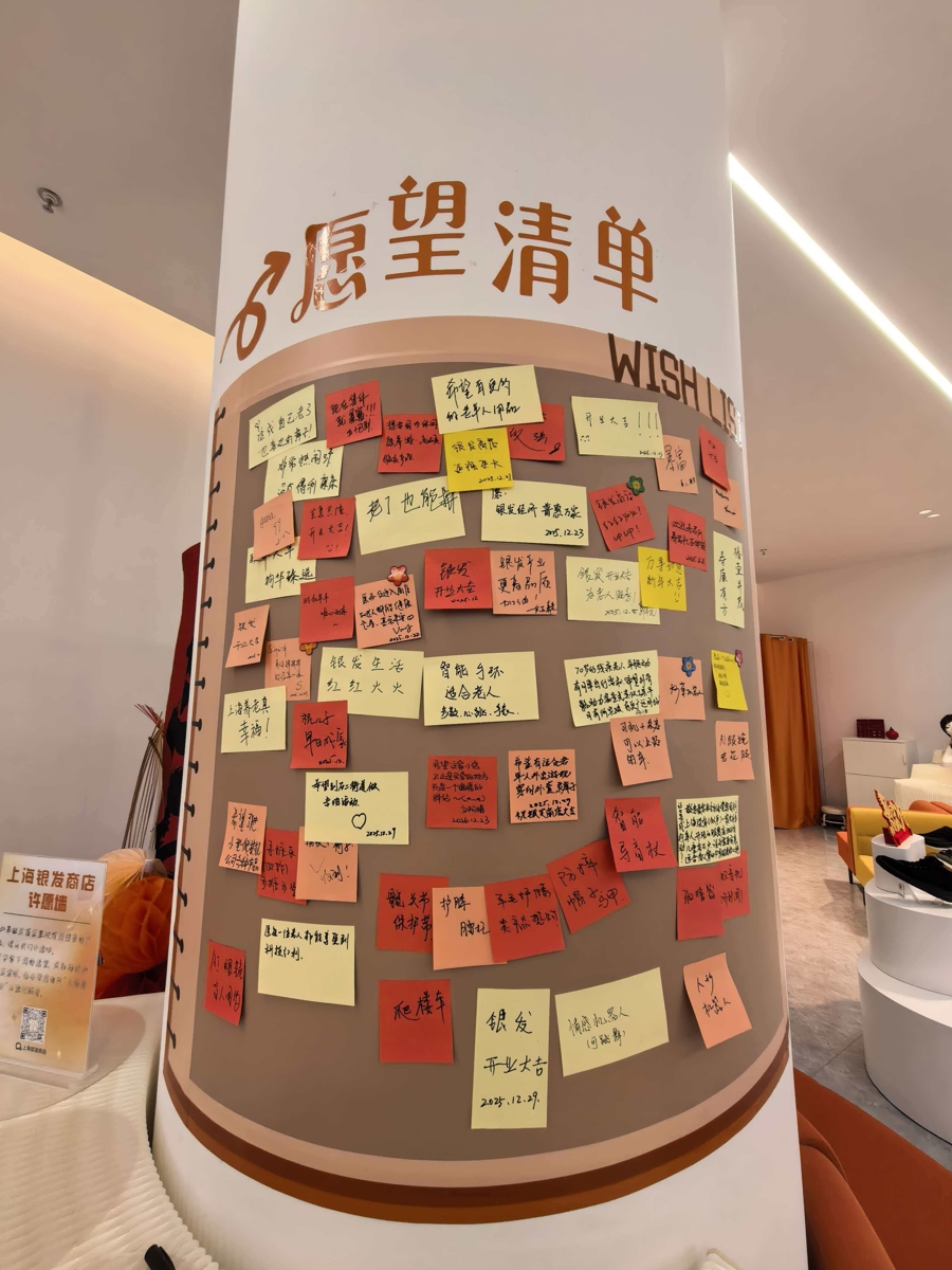 上海银发商店里的老东谈主许诺墙。周楠 摄