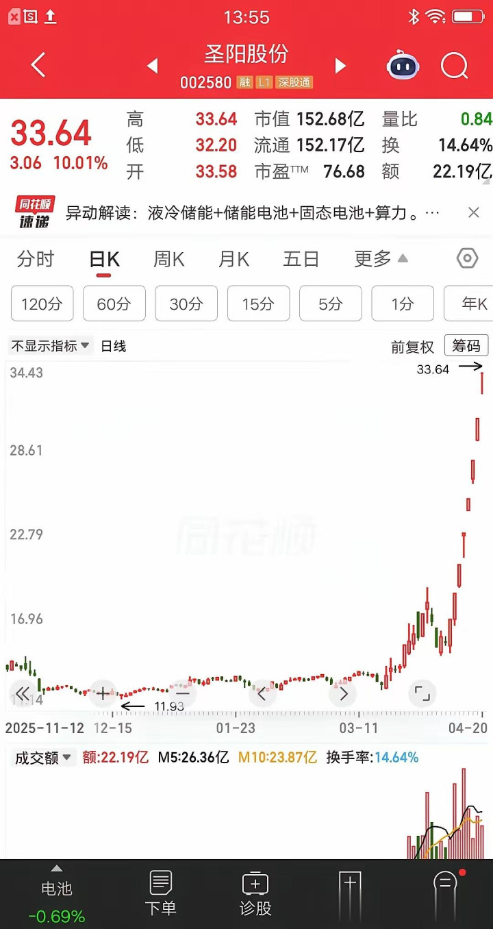 ag登录 火爆的圣阳股份何时跌下去? 七板必不合, 高位必落潮!