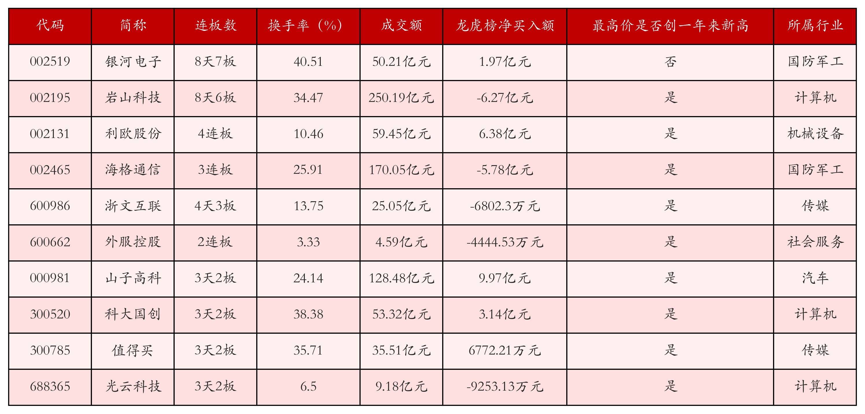 达成1月14日收盘,上证综指下落0.31%,收于4126.09点,深证成指高涨0.56%,a8体育app收于14248.6点,ag登录创业板指高涨0.82%,收于3349.14点。本日沪深两市A股以为108只涨停,玄虚刻下连板数以及当日龙虎榜数据,其中较为强势的前三只个股折柳为:星河电子(002519)、岩山科技(002195)与利欧股份(002131)。本日强势个股前10位具体数据见下表: