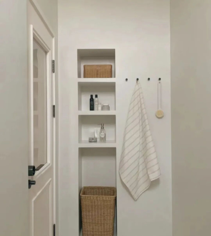 这么就可以把沐浴用品都放进去了,不仅从简空间,还能让卫生间看起来愈加整皆。