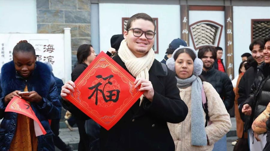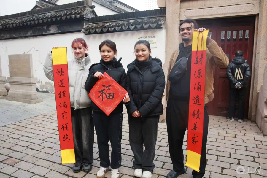 二年齿小学生小杨和爸爸姆妈来到现场,他请书道家协会的爷爷写了一个福字,又跟穿戴汉服的责任主说念主员合影,还列队领了一串糖葫芦,得益满满。在华东师范大学就读的巴西留学生爱德华与其他30多名留学生,报名来到了对子大会现场。他们先到文庙前合影,又去看书道家写对子,体验了一把作念棉花糖,ag国际还品味了老字号米酒。爱德华很宠爱中国文化,在巴西时就读于孔子学院,他说:“好多中国的习惯夙昔只在书上看到过,今天第一次切肉体验,相等有亲切感,很心爱。”