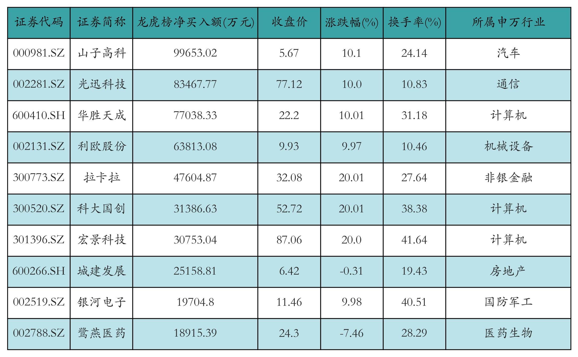 昨日龙虎榜生意部净买入额前10深信见下表: