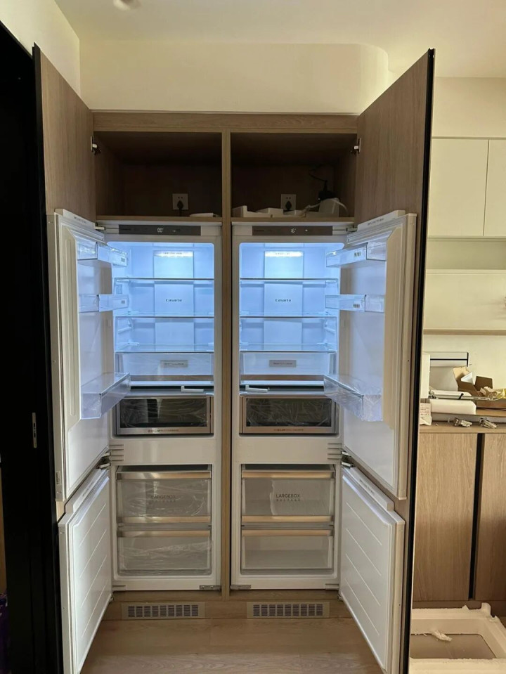 信得过的镶嵌式雪柜,东谈主家散热是在前边的,是以能严丝合缝,颜值和实用性在线。