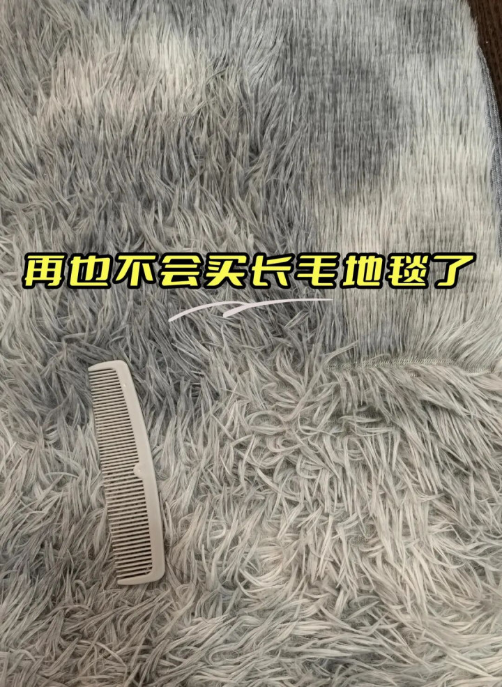 网友@ yuly 说:买的长毛地毯,洗过几次,毛就一缕缕,丑得不行,用狗毛钢梳梳完,两天又打回原形,蓄意丢掉了。