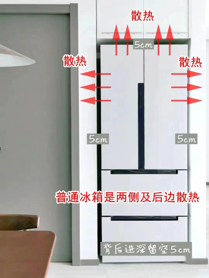 更坑的是散热问题。鄙俚雪柜是两侧及后边散热,是以两侧、上头、后头皆需要预留5cm~8cm散热距离。