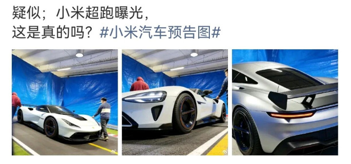 除此以外,在网罗上也出现了一些对于小米新车的相片,无论是从外不雅依然翰墨形态来看,基本上齐短长常一致地指向小米超跑。