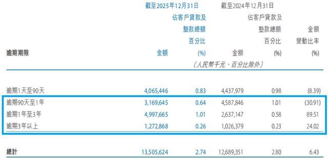 落幕2025年末,天津银行的落伍贷款约为135.06亿元,较2024年末加多8.16亿元,同比增长6.43%。其中,“落伍90天以上贷款”估量约为94.41亿元,较2024年的82.51亿元加多约11.9亿元,同期依旧高于2025年的不良贷款数据,意味着畴前一年的压降是不可功的。
