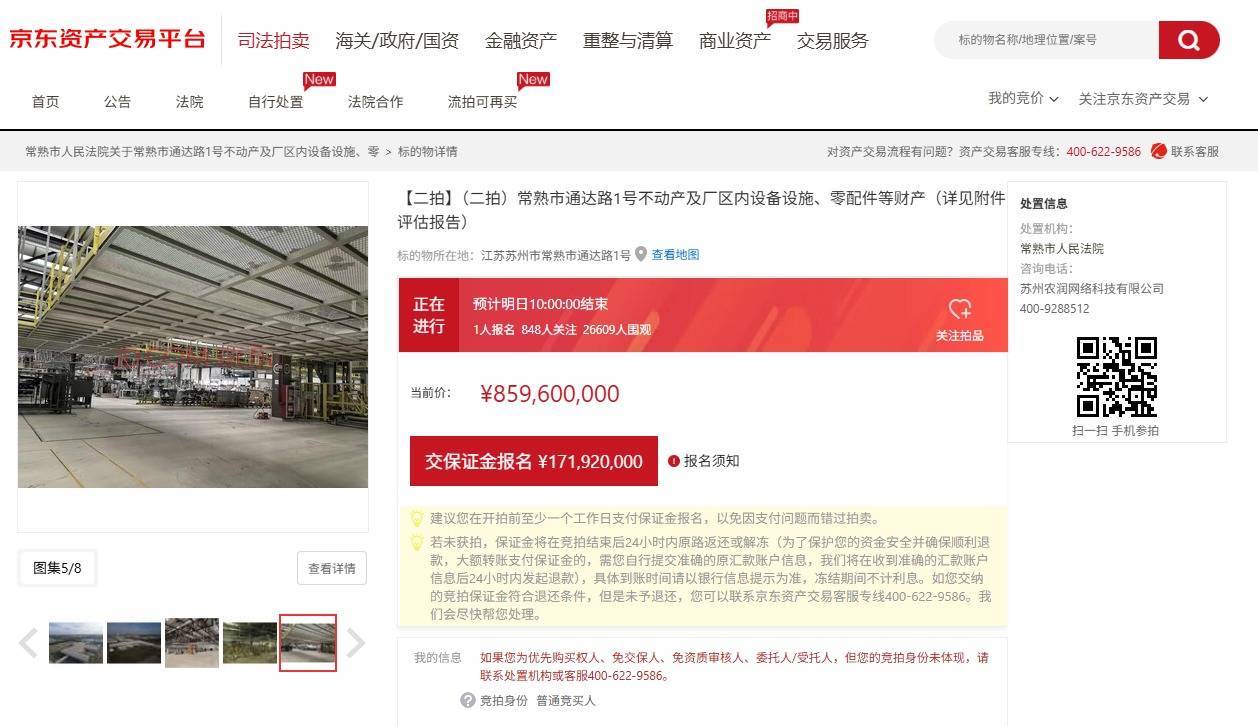 【大河财立方音讯】1月15日上昼10点,京东财富交往平台败露的信息败露,常熟市邃晓路1号不动产及厂区内缔造法子、零配件等财产二次拍卖初始。