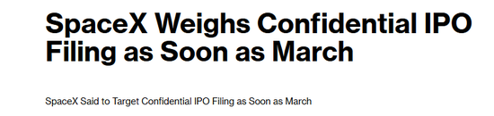 彭博引述知情东谈主士涌现,马斯克(ElonMusk)旗下天外探索技巧公司SpaceX磋议最早在3月守秘提交IPO文献,以推动史上最大界限的上市策画。